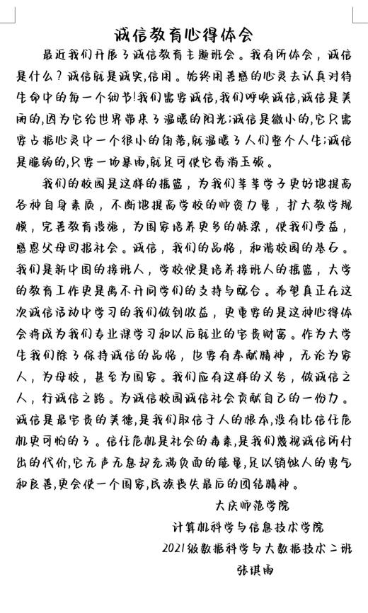 “人而无信不知其可也”,诚信是中华民族的传统美德,也是社会主义核心价值观的重要内容。资助诚信教育主题活动的开展,不仅将国家助学贷款工作落到实处,惠及每位需要关怀的贫困学子,更加强了学生们对诚信感恩意识的培养,推动学生诚实守信、感恩笃学、自强不息。让广大青年学生增强中华诚信文化认同感、自豪感、归属感,让诚信文化在继承中发展,在创新中发扬,真正把诚信道德转化为情感认同和行为习惯。