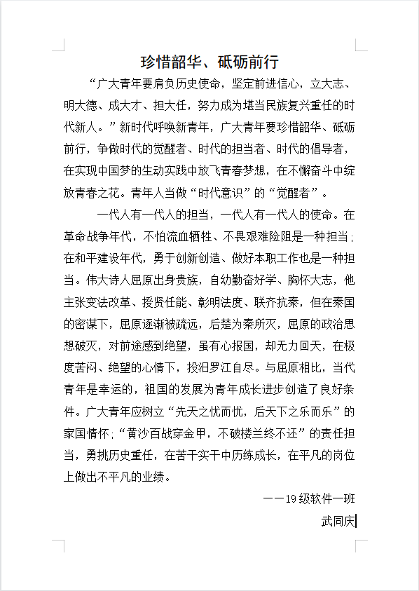 “青春如初春,如朝日,如百卉之萌动,如利刃之新发于硎”,青年是整个社会力量中最积极的力量,国家的希望在青年,民族的希望在青年。 计算机学子以赤诚的文字深情地歌颂共青团,在火热的文字中放飞属于自己的青春梦想。