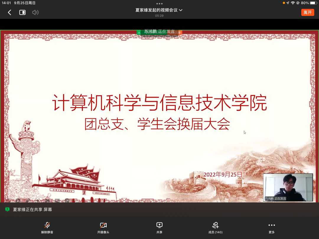 会议的最后,苏鸿鹏老师对新一届部长、副部们提出了几点要求,希望他们:尽快适应新的身份;找准定位,完善自我;统筹学习与工作,快速进入工作状态。
