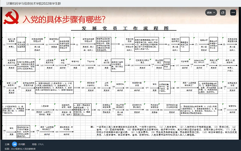 明确入党流程,坚定入党信念。会议通过讲解党的基本知识,引领学生们思考“作为新时代的大学生——我们,为什么要入党?身为党员的权利和义务是什么?”,引导学生端正入党动机,牢记党的初心和使命,让同学们明白,加入中国共产党是一件光荣而严肃的事情。