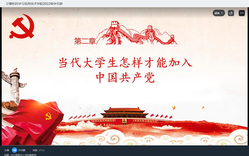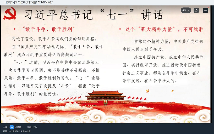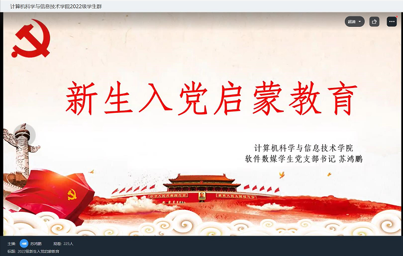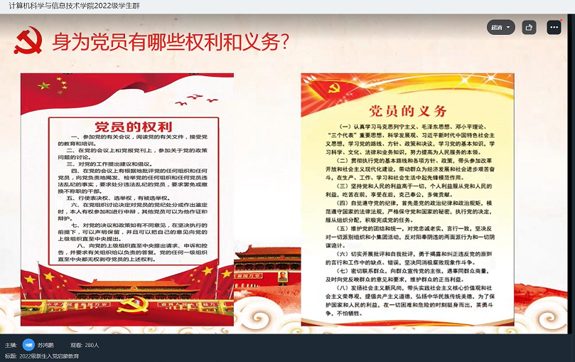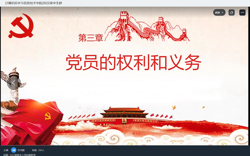 心中有信仰,脚下有力量。为让新生正确看待入党,树立正确的入党动机,详细了解入党流程,引导新生积极向党组织靠拢,提高思想觉悟,激发广大新生爱党爱国热情,2022年9月24日,Betway体育西汉姆联召开2022级新生入党启蒙教育线上钉钉会议,会议由Betway体育西汉姆联软件数媒学生党支部书记苏鸿鹏主持,2022级全体同学参加。