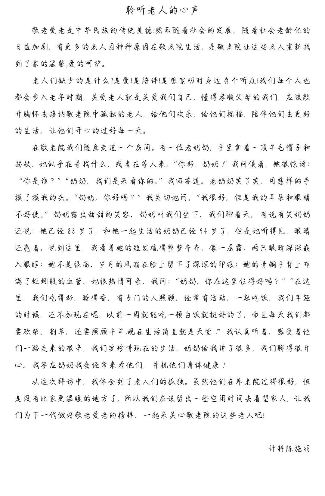 在此次重阳节敬老爱老系列志愿服务活动中,每位计科学子在给老人们带去欢乐的同时,也提高了自身爱老敬老的意识。他们表示,今后定将计算机学院优良的志愿服务传统传承下去。