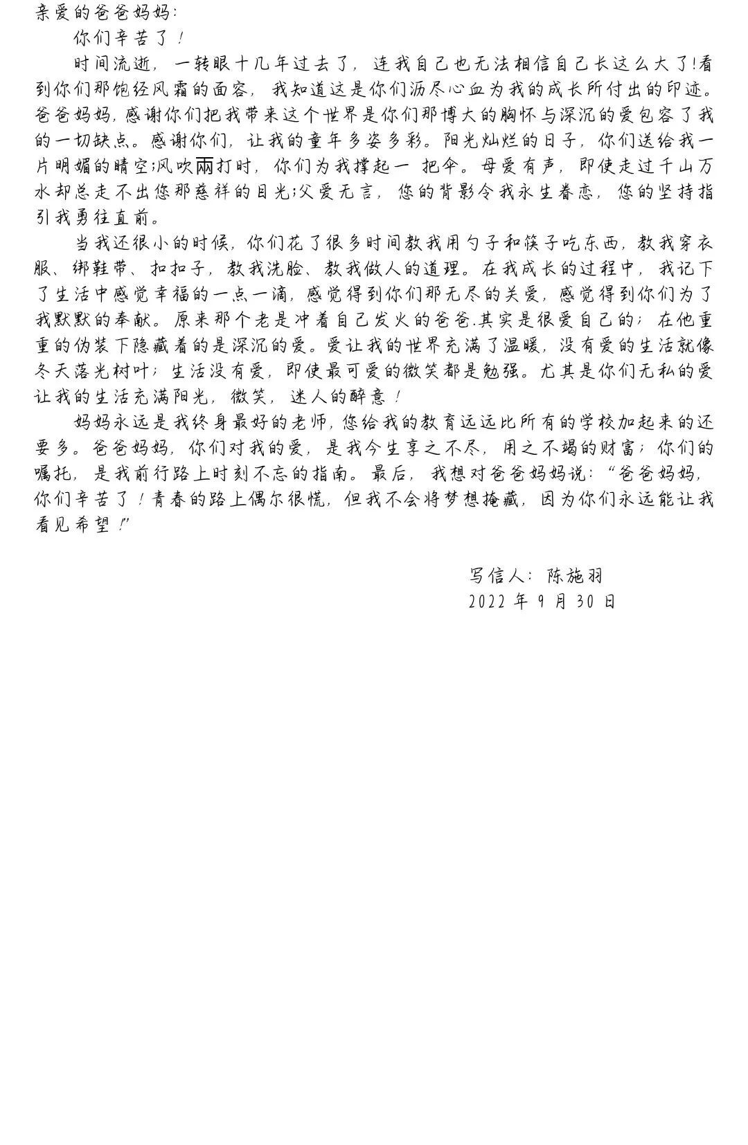 不紧不慢的时间从指缝中悄然流过,落在爸爸妈妈的发丝中,爷爷奶奶的笑纹里,雕刻出岁月的痕迹。“沙岸菊开花,霜枝果垂实。”今天是农历九月初九,又是一年重阳时。在这一个特殊的日子,Betway体育西汉姆联的同学们也有一些“话”想对家中长辈与父母说。