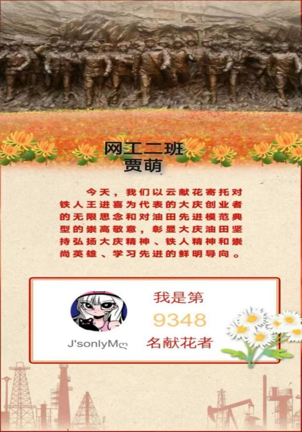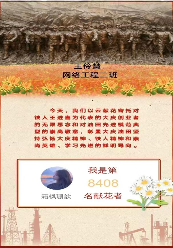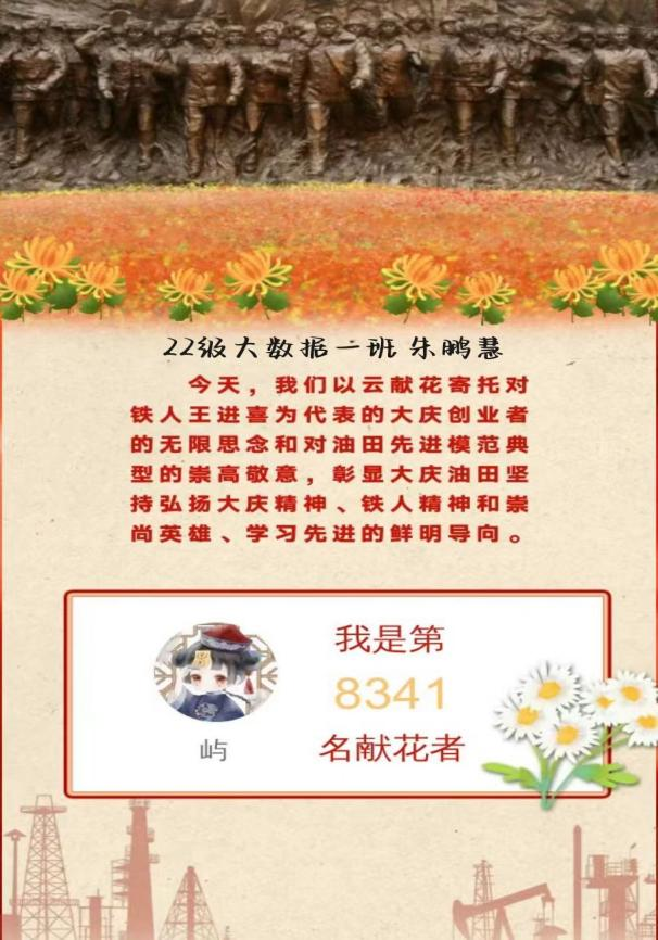 铁人精神无论在过去、现在和将来,都有着不朽的价值和永恒的生命力,为继续弘扬铁人精神,让同学们铭记红色基因,我院特组织同学们在大庆油田官微、大庆油田抖音等平台观看“铁人纪念日”直播活动,计科学子们在观看直播的过程中纷纷向王进喜同志敬献花篮,以此表达对铁人的敬畏之心,争做大庆精神、铁人精神的坚定传承者。