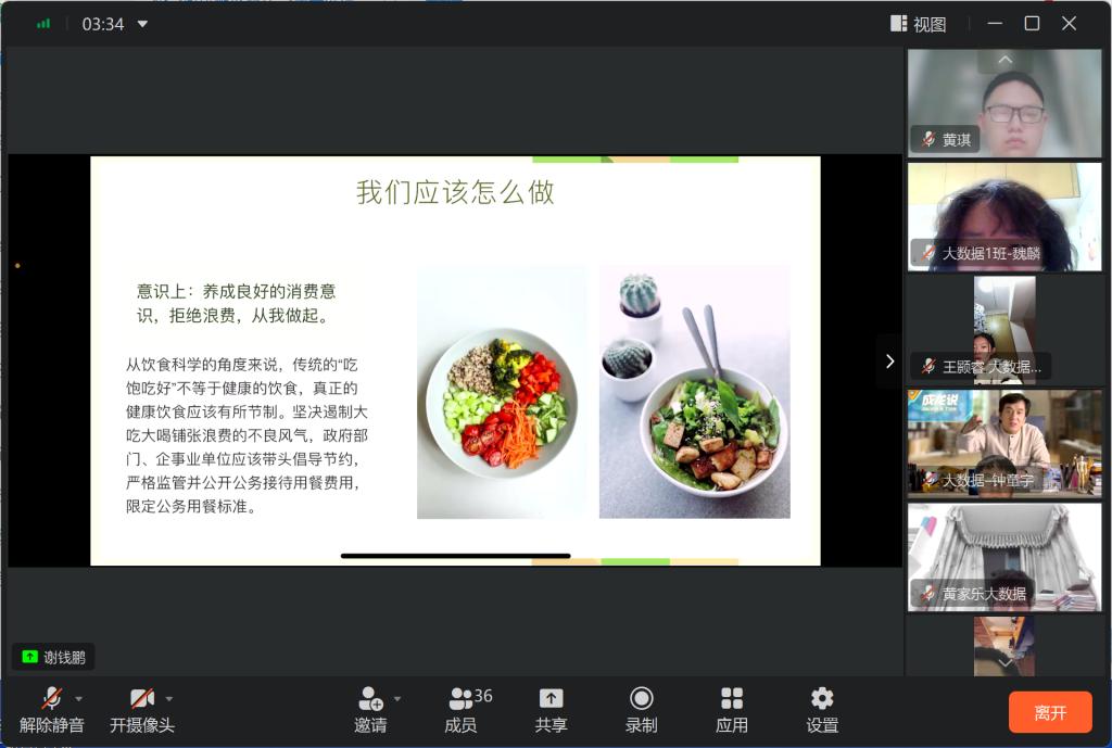 为了更好的向同学们宣扬“科学饮食,告别浪费”的思想,我院以班级为主体开展班会活动。班会形式内容丰富,树立了我院爱粮、节粮的良好风尚。