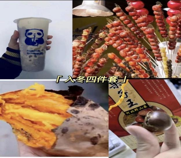 冬日暖阳,幸福而至。集齐过冬四件套:烤红薯、热奶茶、冰糖葫芦、糖炒栗子,搓搓小手,准备过冬。如今立冬四件套越来越流行,为了迎接“立冬”的到来,同学们纷纷晒出了自己的入冬四件套。