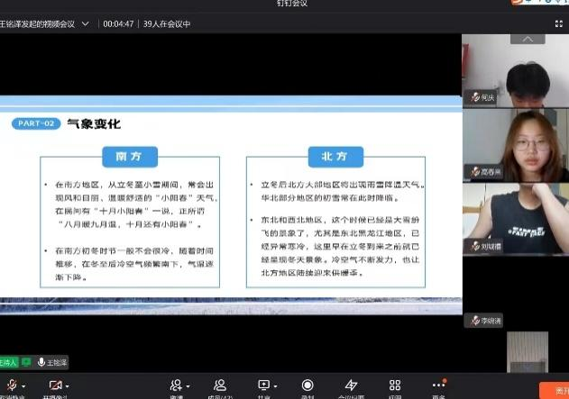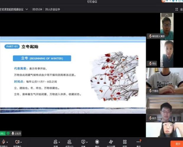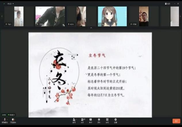 早久何当雨,秋深渐入冬。为提高同学们对传统节日立冬的了解,Betway体育西汉姆联线上举办了“情暖冬日,回归传统”的线上班会。