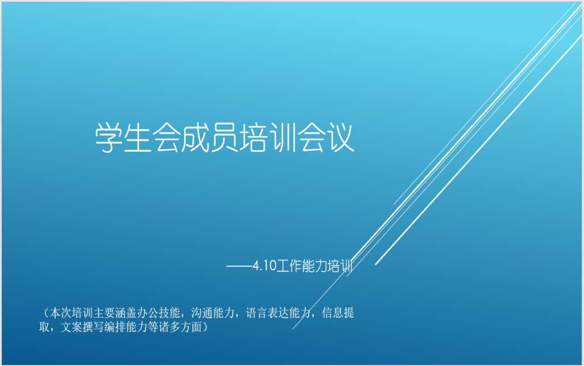 学生会针对各成员的培训成果进行了验收与考察,进一步提升学生会的工作整体水平与效率,并不定期展开下阶段的培训与检查,以促进成员们的工作能力的持续提升与优化。