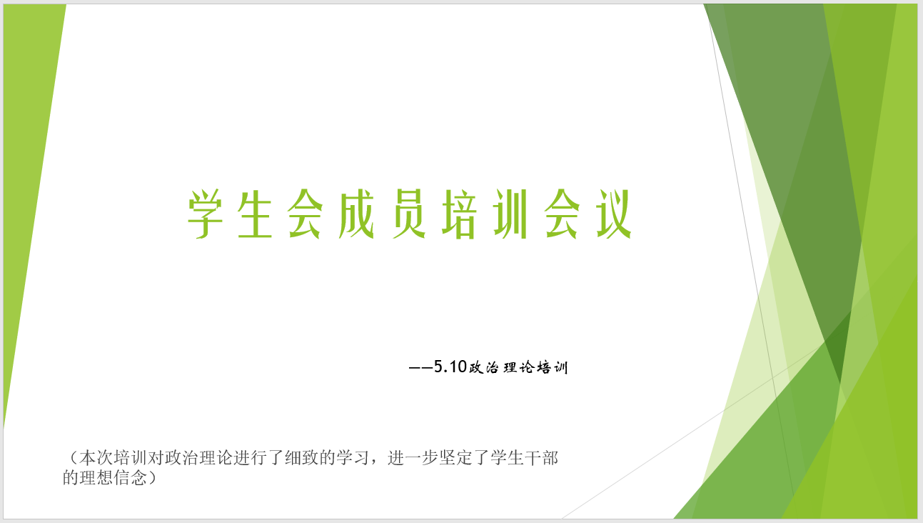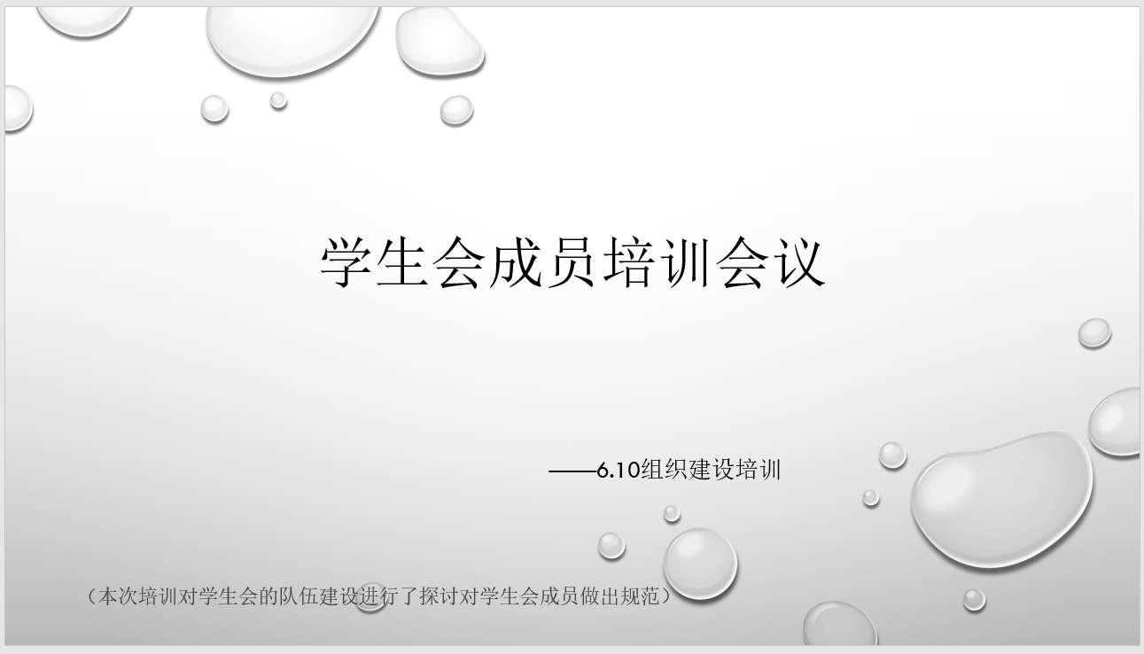 至此,本次会议圆满结束。本次培训对全体学生会成员都做出了更高的要求,全方位提升成员的综合素质,使学生会成员对今后的工作有了更深层的认识,更加明确了自己的位置,同时也增强责任感。