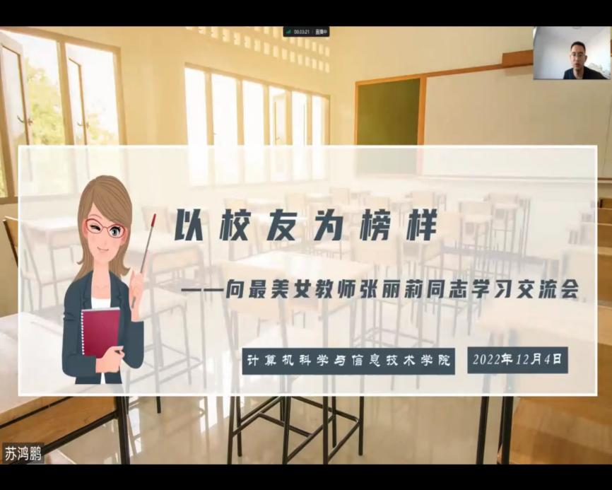 会上,苏鸿鹏老师围绕学习宣传党的二十大精神专题会议、学习铁人精神、向最美女教师张丽莉同志学习交流会三方面展开讲解,在苏鸿鹏老师详细的讲解下,同学们领会到青年新时代中的担当。这次会议中大庆精神、铁人精神如同暖流汇入同学们的心田,最美教师张丽莉的先进事迹令同学们感动,大家纷纷表示,要承接张丽莉老师的奋力一推,把爱传导,用心接力,行小善汇大爱。