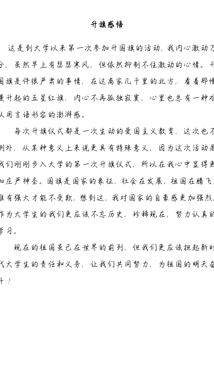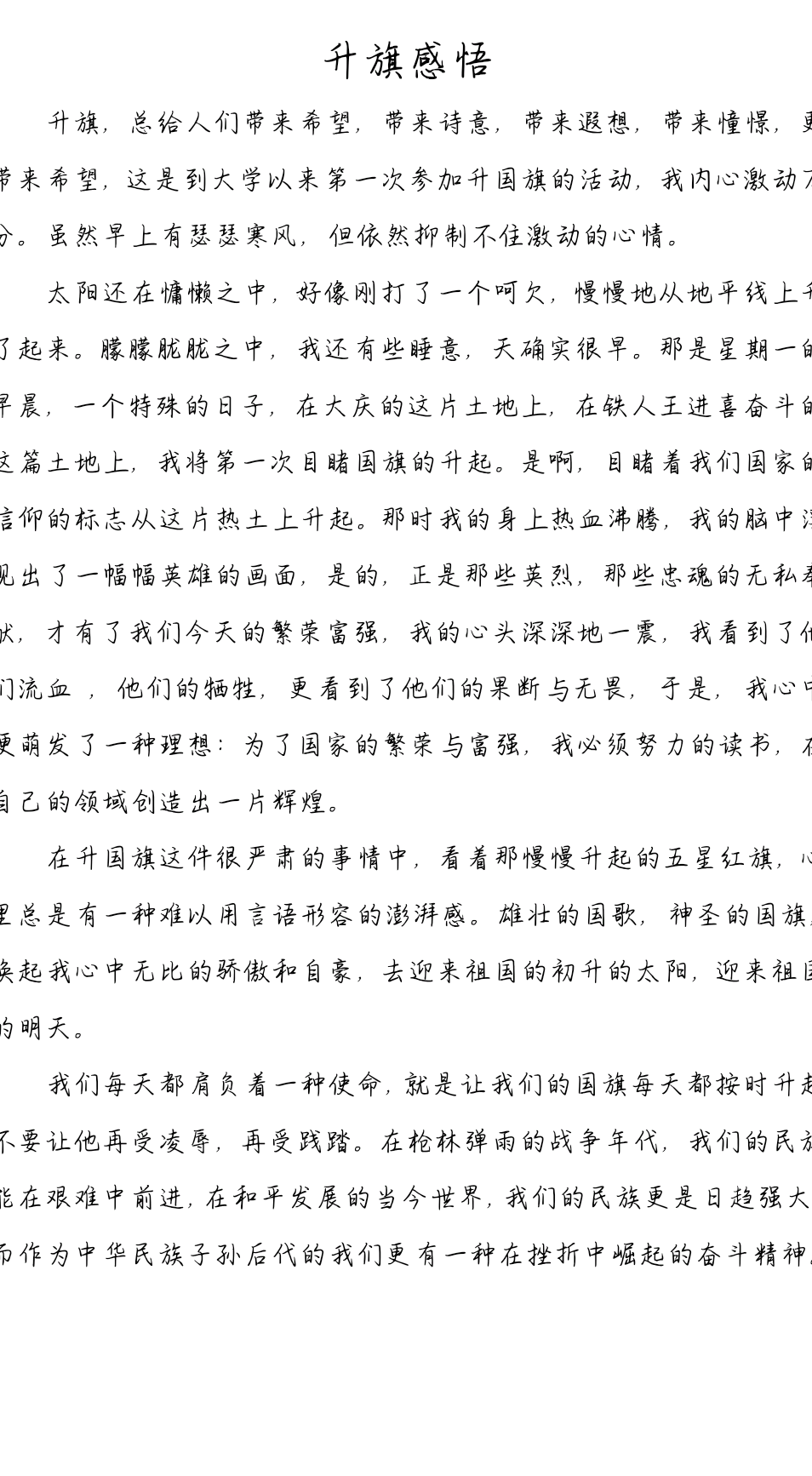 青年以身为笔,热忱豪情为墨,以青春之名,书写时代新篇。此次升旗仪式让计科学子思绪万千,篇篇章章是自信力,字字句句是爱国情。个人发展与国家未来紧密相接,在这片土地上绽放自己的青春之花。下面让我们一起看看同学们的升旗感悟吧!
