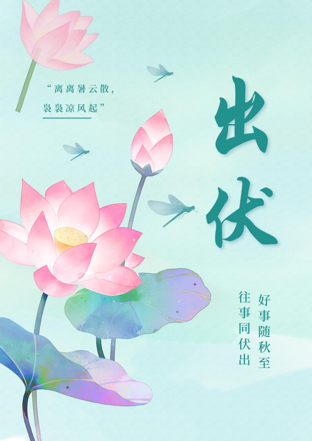 三伏适已过,骄阳化为霖。时光流转,转眼间已到出伏。民间有谚语道:处暑十八盆,谓沐浴十八日也。”意思是出伏之后还要经历大约十八天的流汗日。但总体来说,“秋老虎”虽然气温仍高,但早晚已不是很热,凉爽之意渐足。