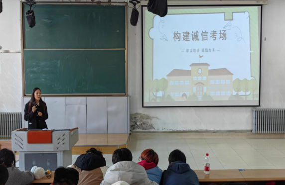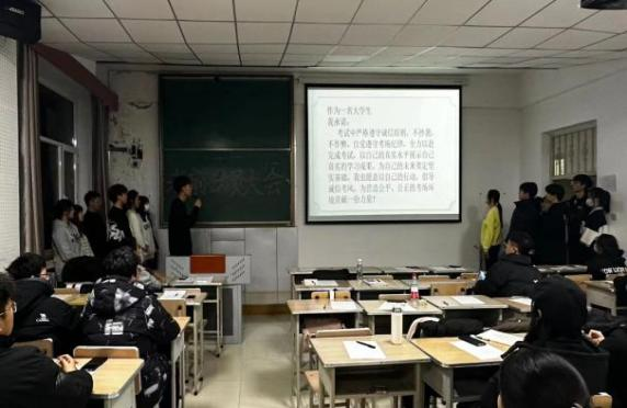 22级辅导员刘烁老师反复强调了考试违纪的后果,让学子们时刻抱有敬畏之心,杜绝所有作弊违纪行为。并希望同学们充分利用复习时间,制定合理的复习计划,掌握重要的知识点,熟悉主要内容,查漏补缺,提高复习效果。