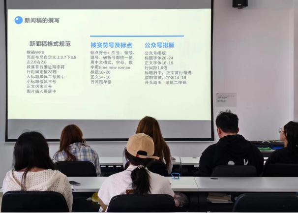 会上,主讲人强调了新闻写作的重要性,并强调新闻对于提升学院形象、提高工作效率、推动学院文化发展具有重要意义。本次培训内容涵盖了新闻稿基础知识、新闻稿写作技巧、编写新闻稿的注意事项、新闻稿的发布与传播等方面。其中,刘烁老师重点提到了对于公众号排版的格式及标点的注意事项,并通过实例分析,帮助同学们更好地理解和掌握。激励同学们要创作出更多有深度、有温度、有力度的新闻作品,共同开创学院新闻宣传工作新局面!