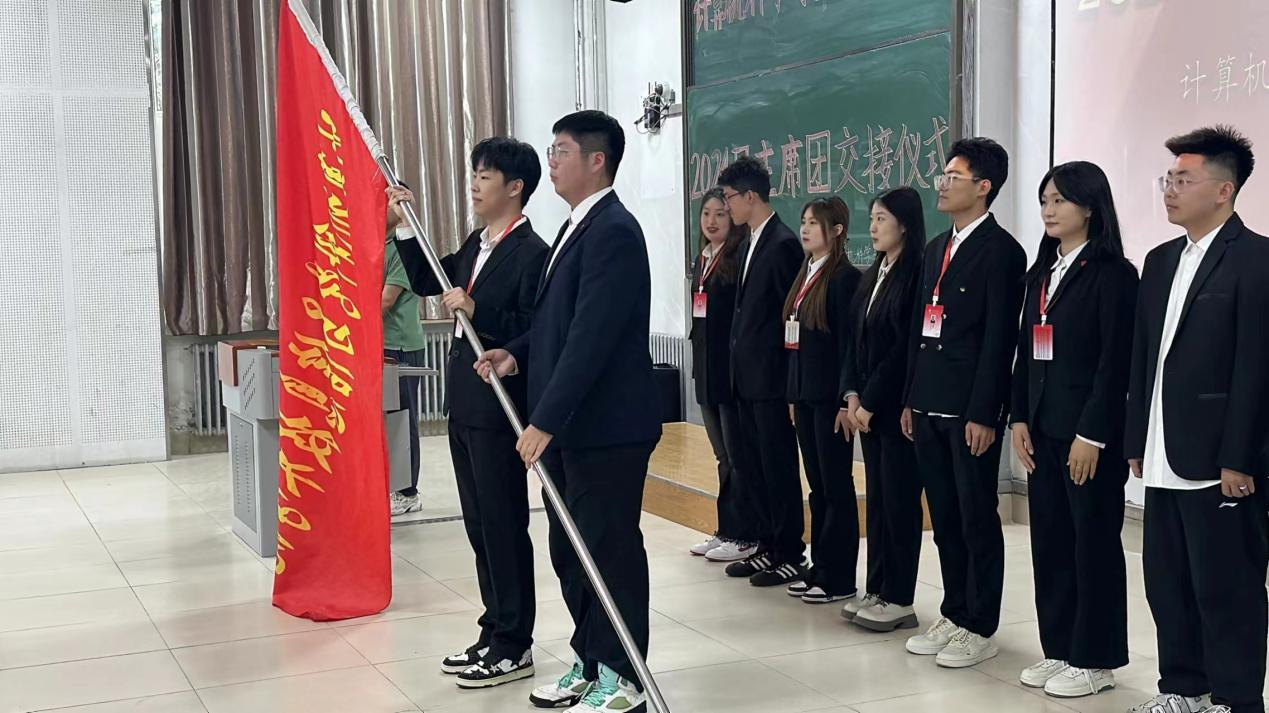 最后,苏鸿鹏老师作出总结,他充分肯定了过往所取得的成绩,同时也寄予了深切厚望,指出换届乃是关键节点,意味着责任的传承。随后进行学生会主席团交接仪式,进行工牌与系旗的交接。