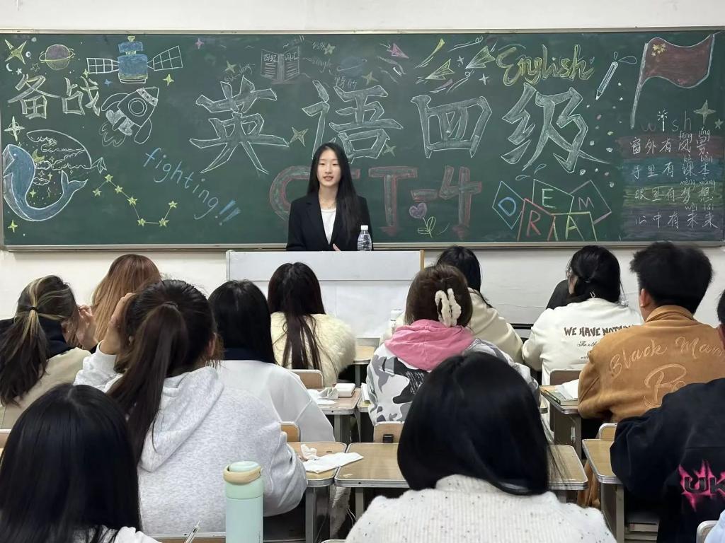 向烨同学详细分析了考试的题型及常见误区,并结合往年考生的成功经验与失败教训,为在场的同学们提供了实用的复习建议。她强调提升听说读写综合能力的重要性,向同学们分享了一些高效的学习方法与资源,同时分享如何利用网络平台进行英语听力训练,如何进行高效的阅读理解练习,及如何提高写作水平等,并鼓励同学们要保持良好的心态,充满自信地迎接挑战。