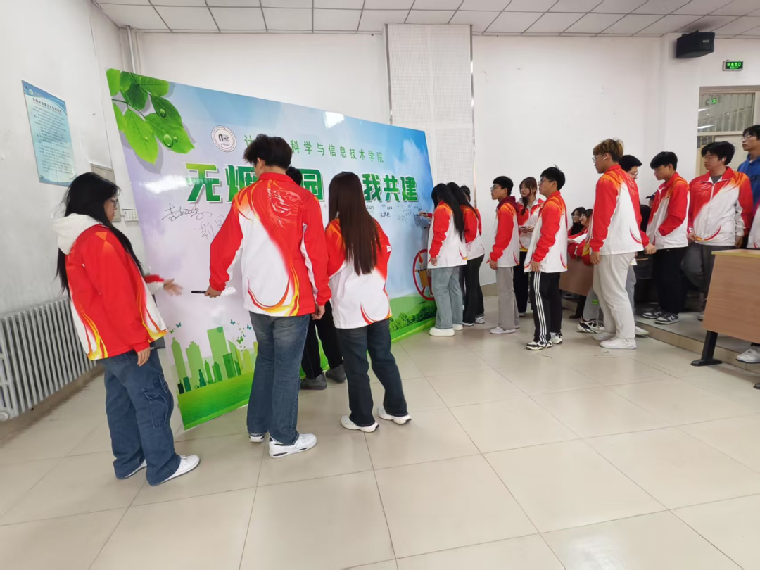 会中,同学们积极响应“无烟校园,你我共建”的号召,纷纷在活动宣传板上签下自己的名字,表达自己对无烟行动的支持和决心。大家纷纷承诺,从自身做起,对吸烟行为说“不”,维护校园无烟环境。