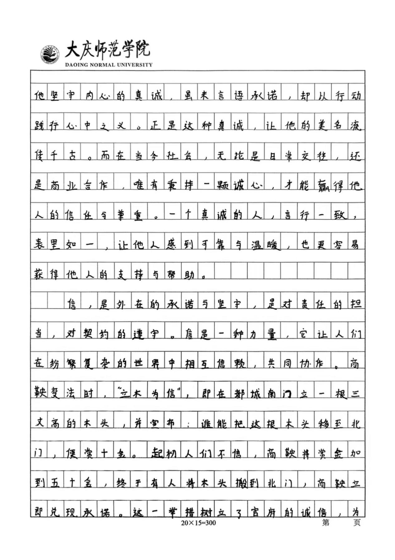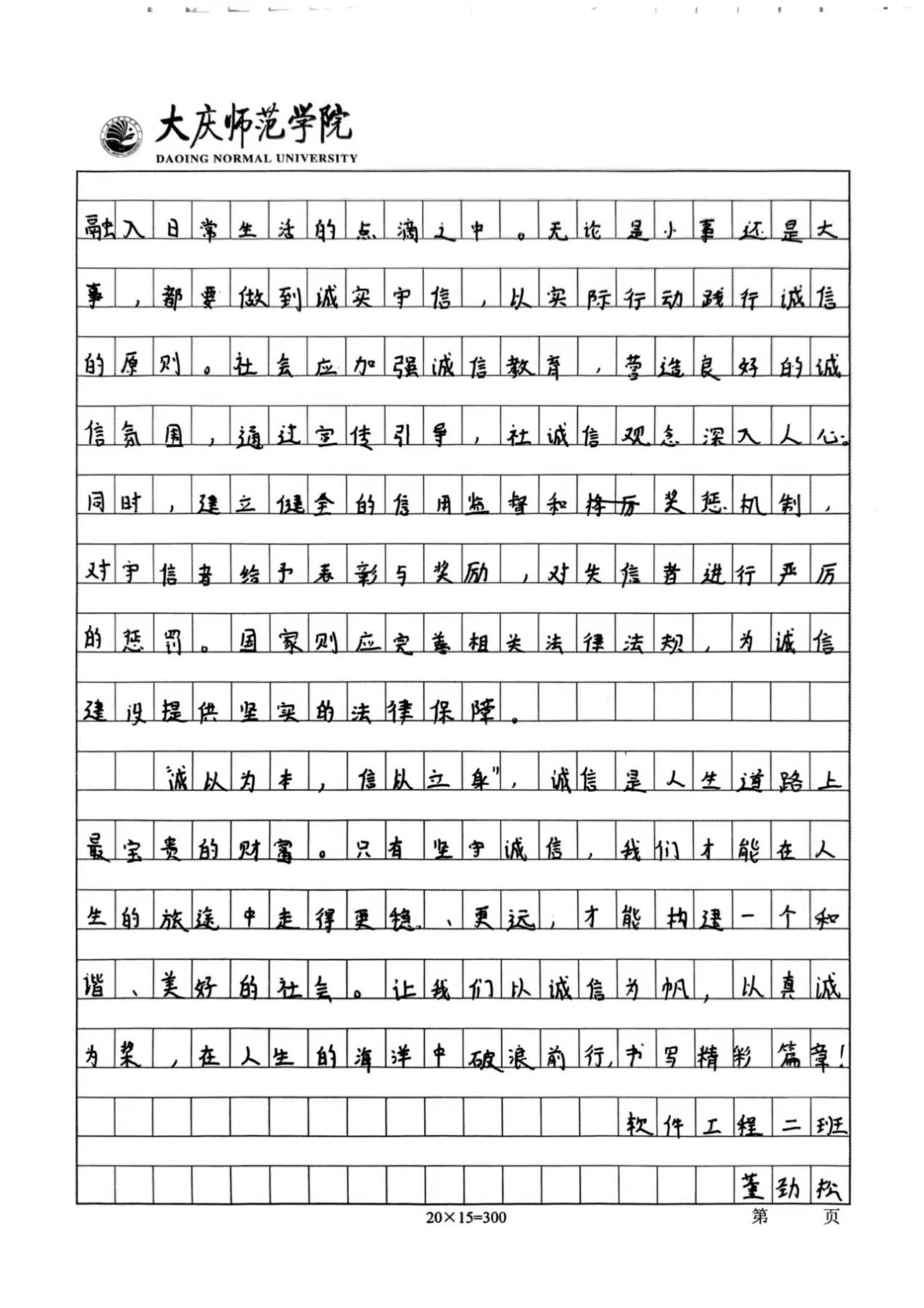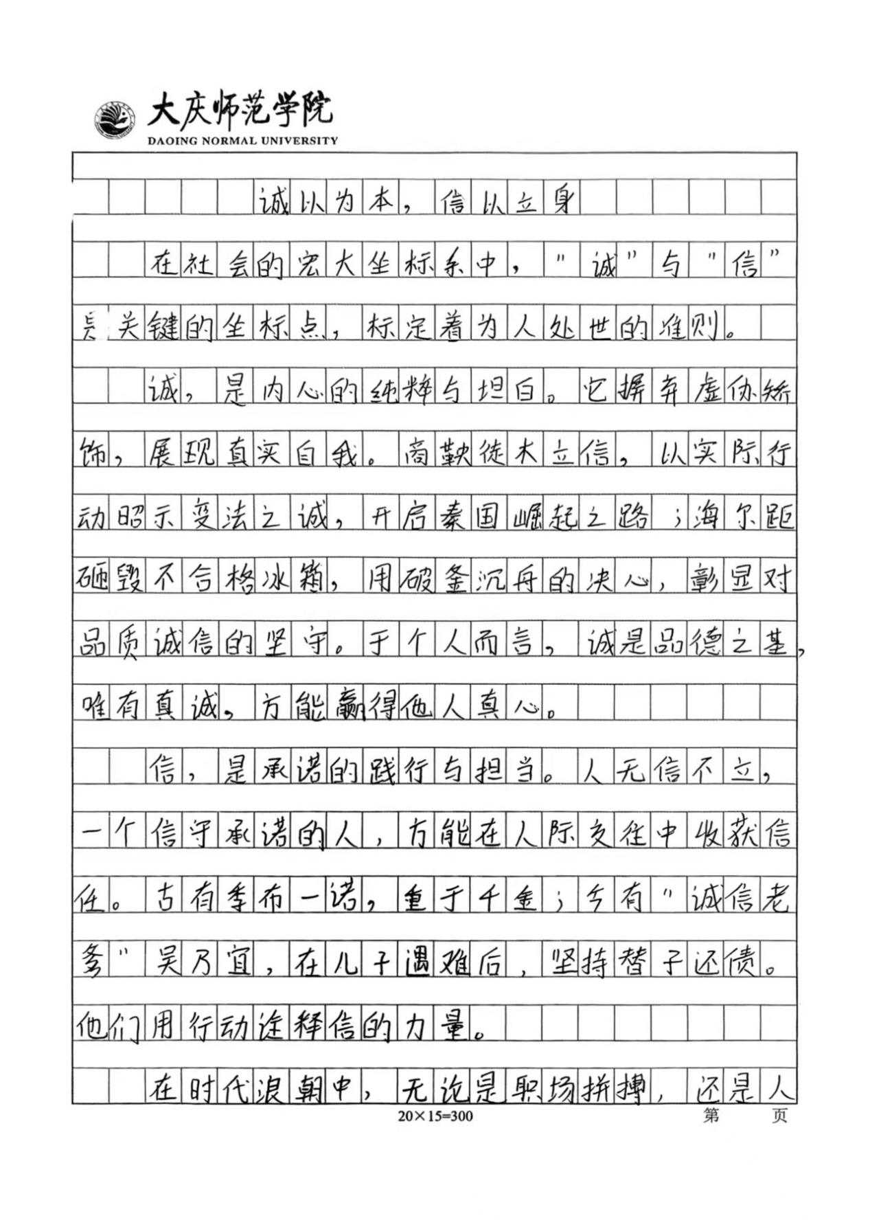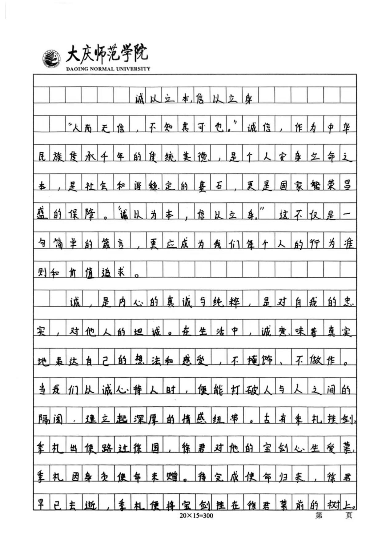 活动开展期间,同学们踊跃报名,积极参与本次活动。他们结合主题内容,用笔墨书写出诚信对于人格塑造的重要性。通过举例论证、引用典故等手法,诠释了诚信的意义,展现了当代大学生对诚信的认知。同时,以本次活动作为载体,传播诚信价值观,营造“人人讲诚信、事事守信用”的浓厚校园氛围,使计科学子在诚信品格的滋养中筑牢人生根基,为构建文明和谐的校园生态注入精神动力。