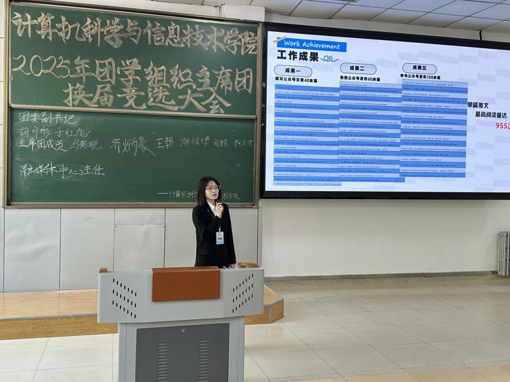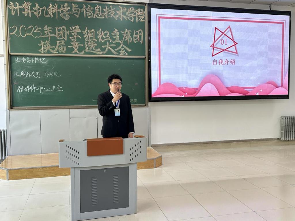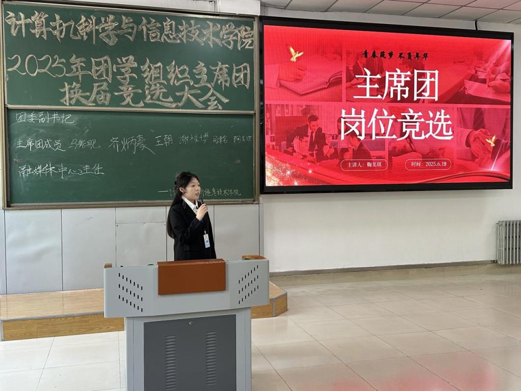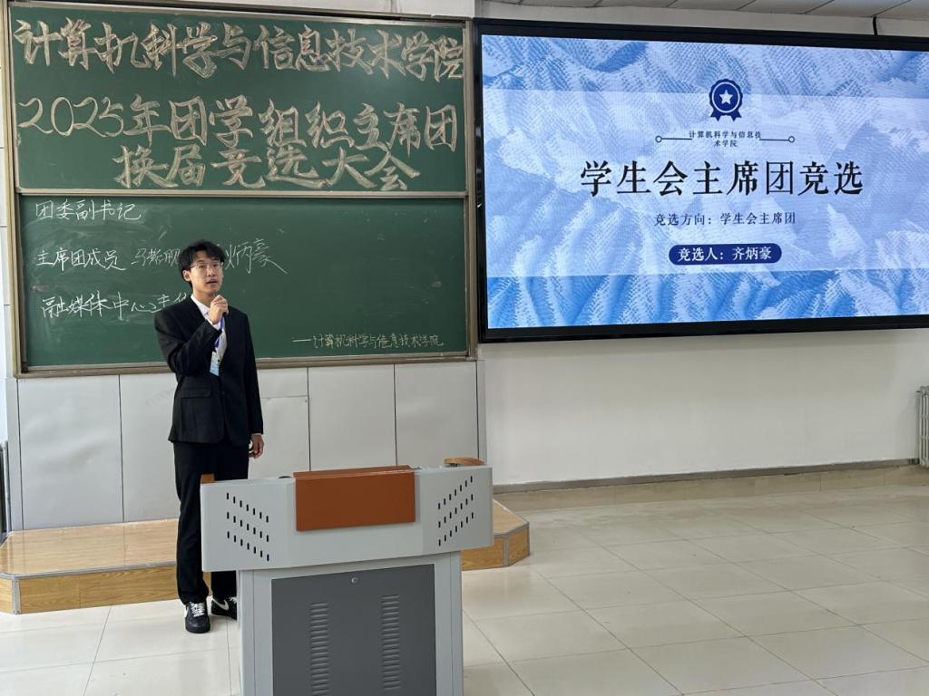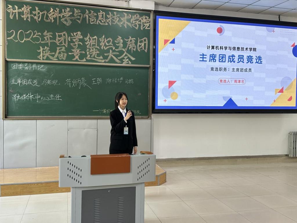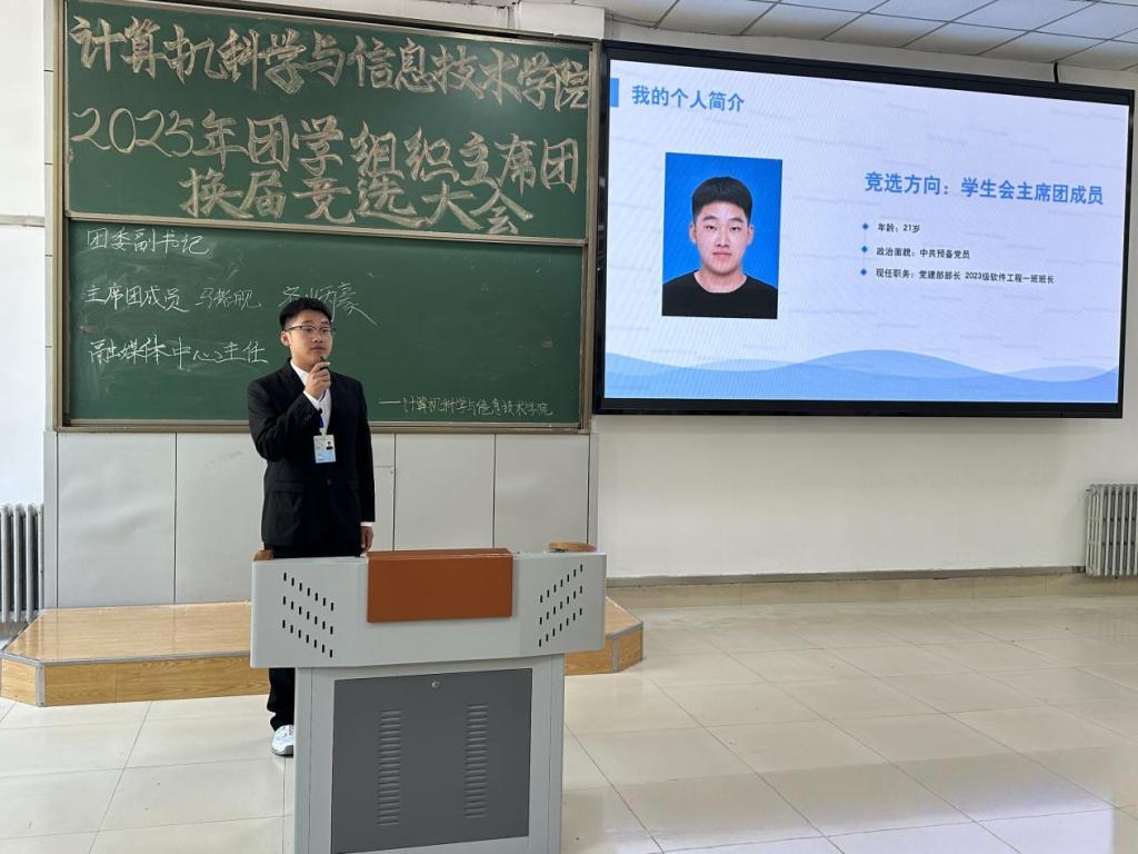 大会伊始,辅导员老师依次为现任团学组织主席团成员颁发任职证明,见证这份责任与荣誉的传递。参与换届的候选人有序登台,通过PPT展示系统阐述了工作理念、工作经历及未来发展规划,并坚定表示以服务同学作为核心,以推动学院发展为己任,主动作为,确保团学组织的各项工作高效有序地开展。
