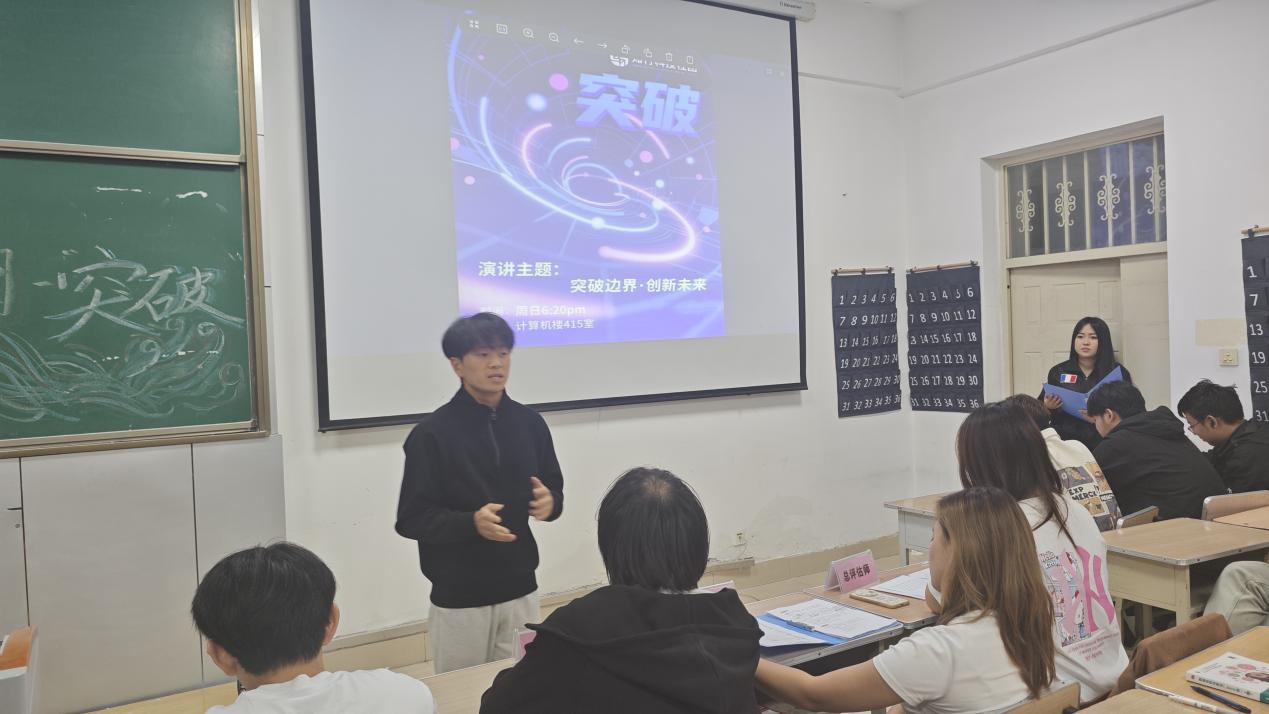 在即兴演讲环节,主持人随机抽取“突破技术瓶颈的小妙招”“如何突破校园学习与社团实践的平衡难题”等贴近学生生活的题目,选手们需在20秒准备后,完成2分钟的即兴表达,既考验临场反应,也展现了计科学子对“突破”的真实思考。