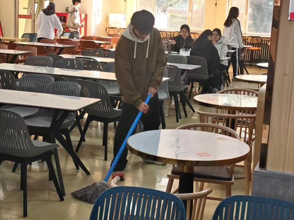 计科学子积极投入食堂保洁、公寓管理和校园安保等岗位实践,认真清理餐桌、细致排查隐患、专注维持秩序。在劳动过程中用心记录点滴,展现了计科学子脚踏实地、勇于担当的精神风貌。通过此次亲身体验不同岗位,深刻地理解了劳动艰辛,培养了尊重劳动的意识,在实践中有效提升了团队协作与问题解决能力。