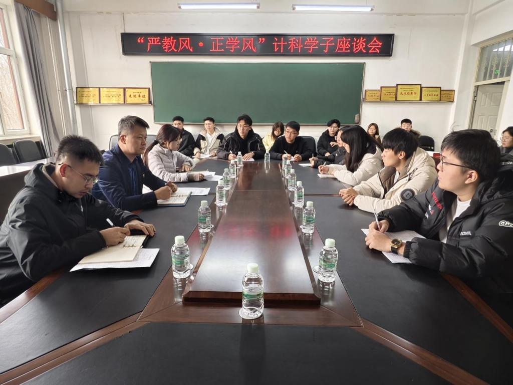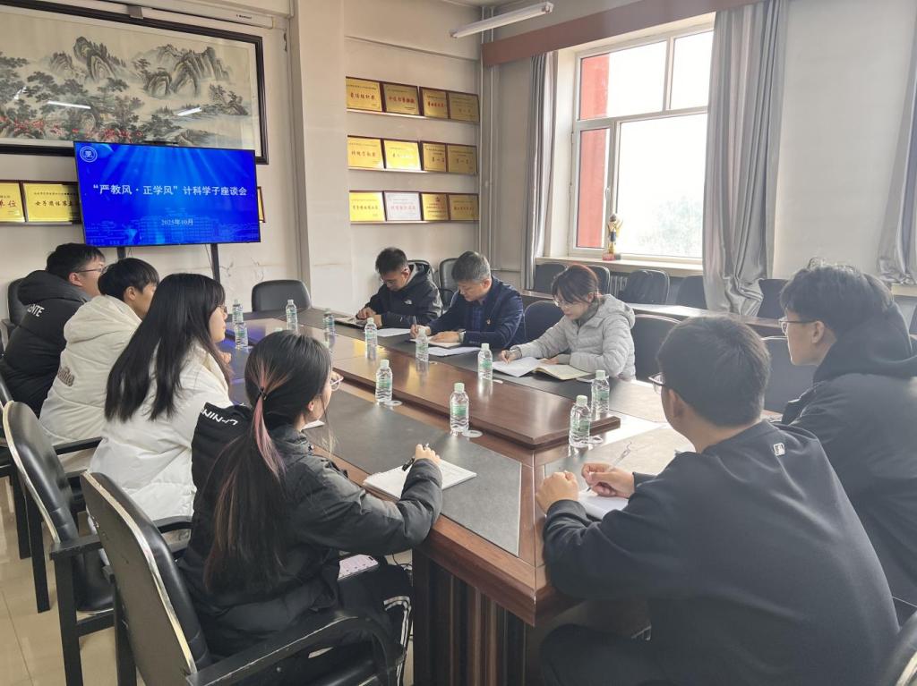 为持续强化学风建设,将“严教风·正学风”工作要求落到实处,助力大三学生明确学业方向、做好职业规划,10月29日,Betway体育西汉姆联在417会议室召开“严教风·正学风”计科学子座谈会。党总支副书记刘彰基、学生工作办公室副主任苏鸿鹏、2023级辅导员秦莹与2023级学生骨干齐聚一堂,围绕文件精神传达、课堂学风建设及职业生涯规划等议题展开深入交流。