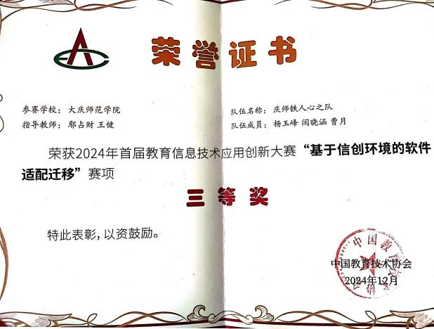2024年首届教育信息技术应用创新大赛“基于信创环境的软件适配迁移”赛项三等奖