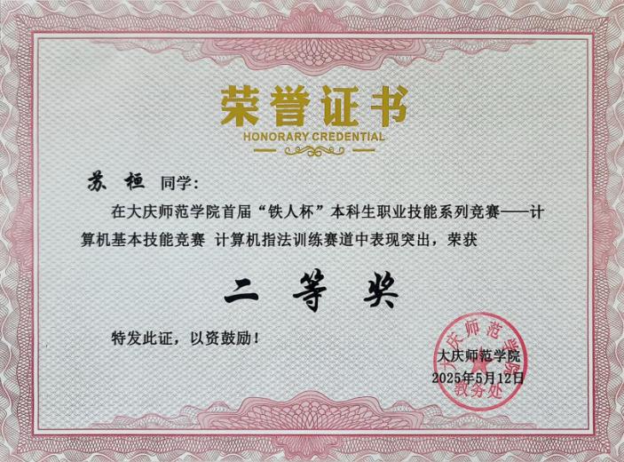 2025年betway中国西汉姆联首届“铁人杯”本科生职业技能系列竞赛计算机基本技能竞赛计算机指法训练赛道二等奖