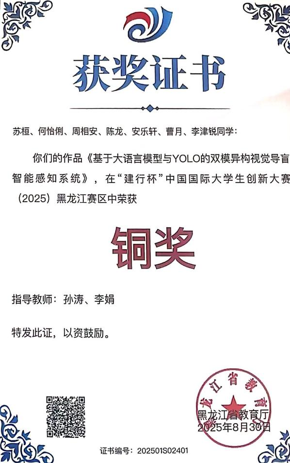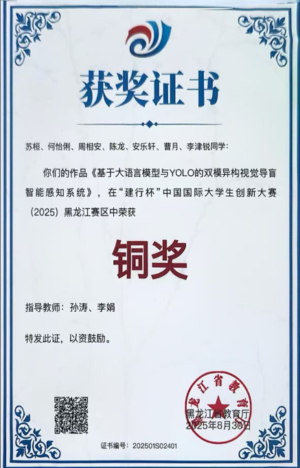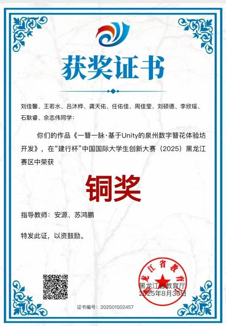 2025年“建行杯”中国国际大学生创新大赛黑龙江赛区铜奖
