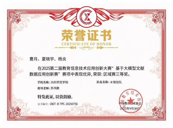 2025年第二届教育信息技术应用创新大赛“基于大模型文献数据应用创新赛”区域赛三等奖