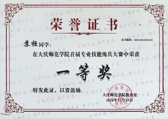 张铭琦,女,共青团员,2023级数字媒体技术一班学生。始终以踏实的学风稳步推进学业,力求将专业知识学深悟透,为后续的专业实践与发展筑牢根基。获评国家励志奖学金、校级二、三等奖学金,荣获黑龙江省“三好学生”“校铁人式优秀共青团员”等多项荣誉称号,现已通过大学英语CET4考试。