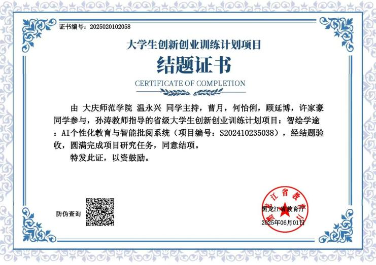 2025年智绘学途AI个性化教育与智能批阅系统省级大学生创新创业训练计划项目优秀奖