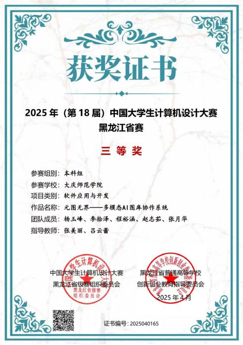 2025年全国大学生数字媒体科技作品及创意竞赛黑龙江省二等奖
