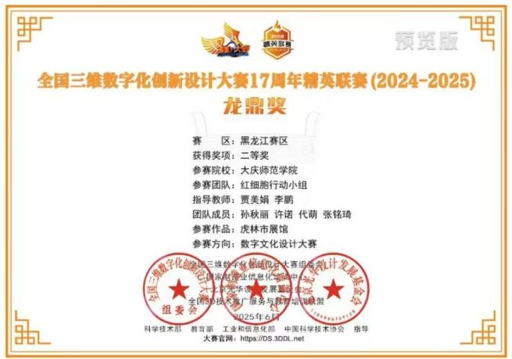 2024-2025年度全国三维数字化创新设计大赛17周年精英联赛黑龙江赛区二等奖