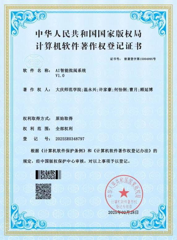 2025年AI智能批阅系统V1.0计算机软件著作权登记