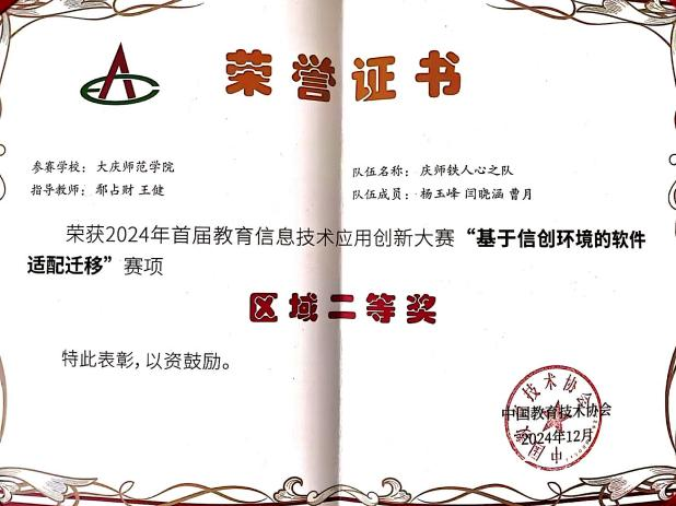 2024年首届教育信息技术应用创新大赛“基于信创环境的软件适配迁移”赛项区域二等奖
