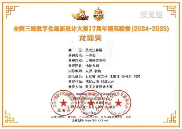 2024-2025全国三维数字化创新设计大赛17周年精英联赛龙鼎奖黑龙江赛区一等奖