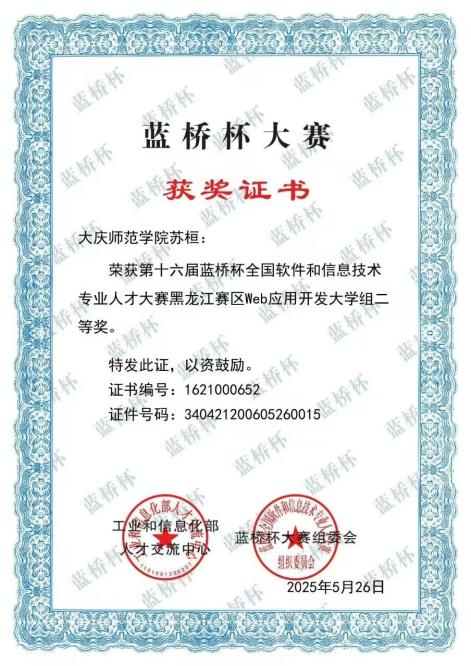 2025年第十六届蓝桥杯全国软件和信息技术专业人才大赛黑龙江赛区Web应用开发大学组二等奖