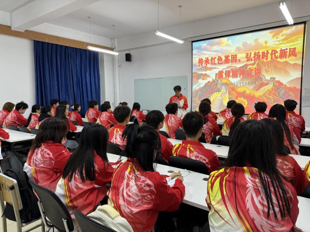 宣讲人王家福则以深情讲述回溯雷锋生平感人事迹,从“雨夜送大嫂”的温暖守护,到“好事一火车”的默默付出,一幕幕真实场景重现了雷锋同志为人民服务的赤子之心,让在场同学深受触动,对“奉献”二字有了更具象的理解与共鸣。宣讲结束后大家纷纷表示,要以雷锋同志为榜样,在平凡中见精神、在细微处显担当,让青春在奉献中焕发更加绚丽的光彩。