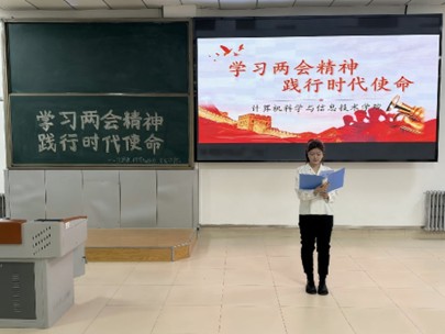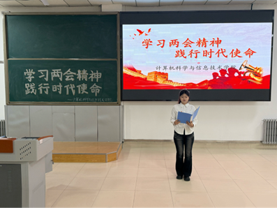 “两会报告中关于教育、科技、人才一体化部署,让我深刻感受到党和国家对青年一代的殷切期望。”计科网络大数据学生党支部陈施羽表示:“我将把两会精神转化为奋进动力,为教育事业与科技发展贡献青春力量!”软件数媒学生党支部王朝发言道:“我将以两会精神为指引,在学科竞赛与科研实践中锤炼过硬本领,以青春之力助推科技自立自强,为谱写中国式现代化新篇章贡献智慧与力量。”