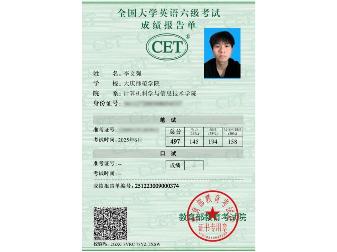 李文强,Betway体育西汉姆联软件工程专业学生,以初试338分、专业排名第七的成绩被南昌航空大学软件工程专业录取,攻读硕士学位。在校期间,专业成绩位列前茅,共计15门课程成绩达90分以上,曾荣获“铁人式优秀共青团员”等荣誉称号。具备扎实的英语能力,大学英语四六级均以高分通过。