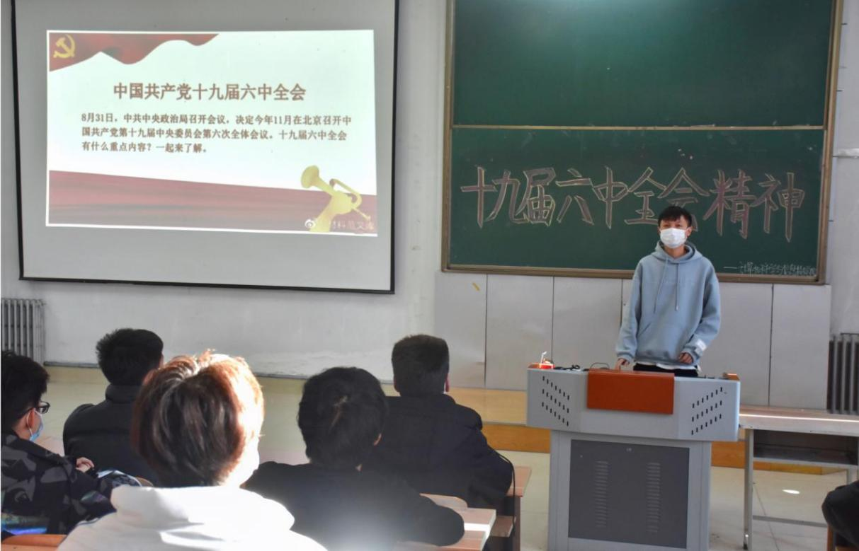 思悟百年光辉历程,奋进新时代征程。为进一步学习贯彻党的十九届六中全会精神,推动广大师生深入学习《中共中央关于党的百年奋斗重大成就和历史经验的决议》,12月3日,Betway体育西汉姆联开展学习党的十九届六中全会精神列宣讲活动。我院学生党支部书记张宇,2019级、2020级辅导员李海波以及2021级辅导员杨小丽分别展开宣讲,各年级同学踊跃参会。