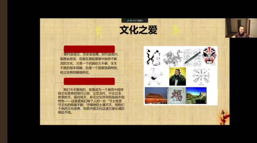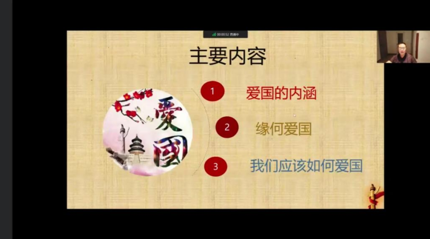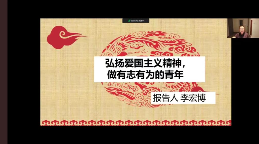 李宏博院长以弘扬爱国主义精神,做有志有为的青年为主题,通过典型的事例,介绍了疆土之爱、人民之爱和文化之爱。讲述了东北抗联精神、战斗英雄、人民英雄杜国富的事迹,讲述了抗疫英雄钟南山、张定宇的事迹;还讲述了大庆精神、铁人王进喜以及传统文化、文学、思想、节日、戏剧、美德等,深深地弘扬了爱国主义精神和民族主义主旋律,激发了同学们的爱国意识。