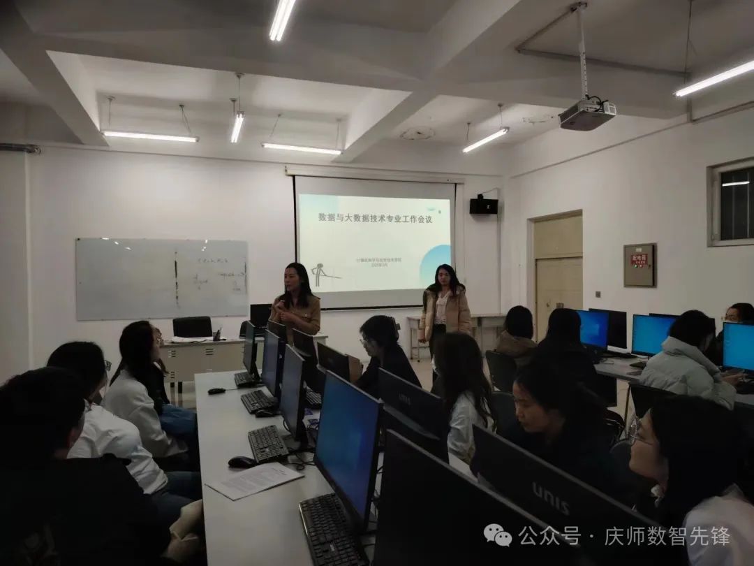 会议伊始,云计算与数智应用教研室主任通过详实的数据和典型就业案例分析,介绍目前我校数据科学与大数据技术专业就业情况和当前就业形势,同学们清晰地了解到当前大数据领域的人才需求趋势和就业市场动态,为即将步入职场的同学们指明了方向。