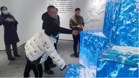最后李宏博院长一行来到大庆国际数字艺术创意中心进行参观,双方进行了交流座谈,大庆数字创意设计产业园总经理陈春利详细介绍了产业园近年来的快速发展及对人才的需求,希望进一步深化人才引进、交流、培养等方面的合作。李宏博院长表示,学院始终坚持以人才培养为根本,以学生就业为导向,通过搭建校企合作创新平台,进一步打造产教协同创新共同体,希望双方在未来的合作中突出新思路、新内容。