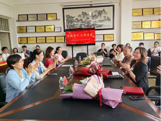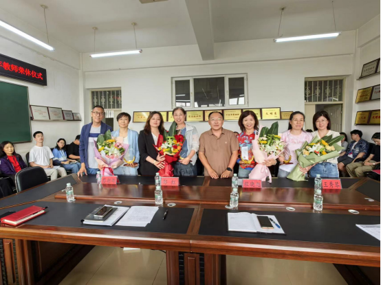 随后,在热烈的掌声中,学院领导共同为四位荣休教师献上了鲜花和奖牌,以表达学院对她们最崇高的敬意和感谢。