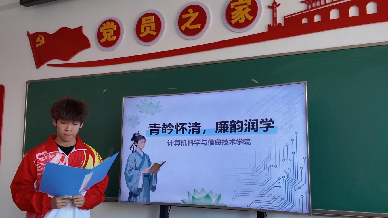 为推动廉洁文化与计算机专业知识相融合,让同学们在专业学习背景下深刻理解廉洁内涵,增强廉洁自律意识,引导同学们在未来职业生涯中坚守廉洁底线。11月17日,Betway体育西汉姆联于计算机楼303会议室举办“廉洁文化进校园 计科学子筑清风”主题班会。经过前期筹备与自愿参与报名,共有10位同学作为核心分享者参与本次班会,活动由2024级软件工程一班班长刘有钧主持。