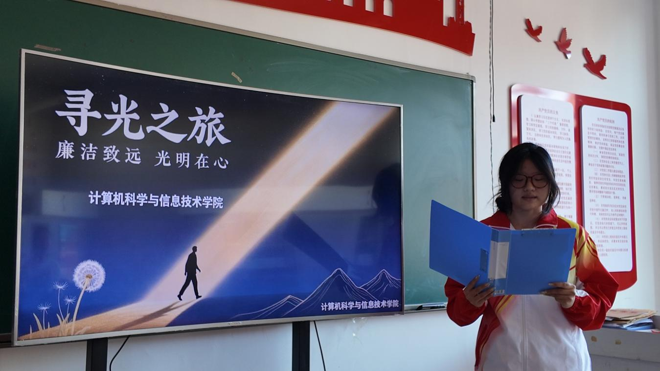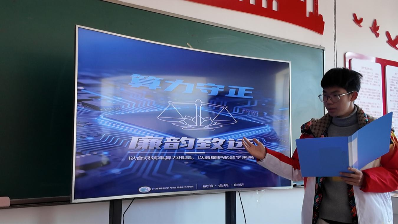此次班会是学院推进“廉洁文化进校园”的重要一环,通过专业与廉政教育的有机结合,使同学们在参与中深化理解,在展示中凝聚共识。计科学子将始终以廉心守初心,以代码筑清风,在数字世界中行稳致远,为清朗网络空间与社会诚信建设贡献青春力量。未来,学院将持续拓展廉洁教育载体,深化教育内涵,让廉洁之风浸润每一位计科学子的成长之路。(一审:刘烁 二审:苏鸿鹏 三审:刘彰基)