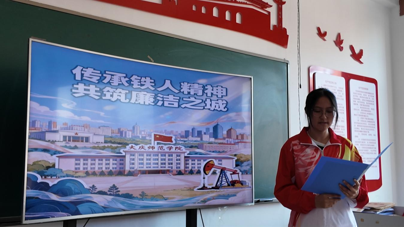 班会上,10名学生代表依次登台,围绕《数智铸廉基,科技扬正气》《算力守正,廉韵致远》《寻光之旅》《以廉为尺,以清为标》《传承铁人精神,共筑廉洁之城》《计科筑廉魂,代码护初心》《青衿怀清,廉韵润学》《莫让贪欲蛀空人生》《码正风清,廉润计科》《青春守廉·不负韶华》等主题,开展海报设计展示与理念分享。同学们将代码逻辑、数据伦理、技术责任与廉洁理念深度融合,从专业视角、价值导向、青春担当等多维度,生动诠释了“廉洁”在计算机领域的独特内涵与实践意义,让廉洁精神与专业成长同频共振。