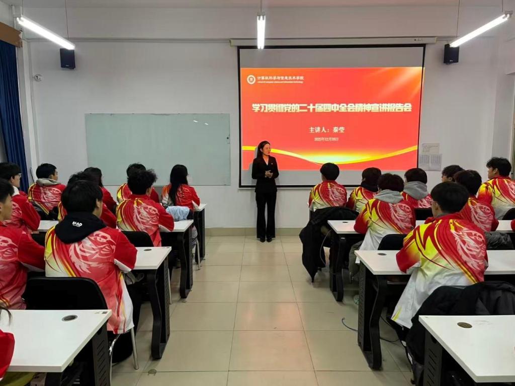 12月17日,院长王健紧扣党的二十届四中全会“加快高水平科技自立自强,引领发展新质生产力”部署,结合计算机学科特色与“十五五”规划建议解读,向学生党员发出殷切号召。他鼓励学生党员筑牢专业根基、强化创新意识,主动对接国家关键核心技术攻关需求,在学科竞赛、科研实践、志愿服务等各类平台中勇挑重担、发挥先锋模范作用;期望同学们将个人理想融入国家发展大局,以全会精神为行动指引,在数字中国、网络强国建设的生动实践中绽放青春光彩,努力成长为兼具深厚家国情怀与过硬专业素养的时代新人。